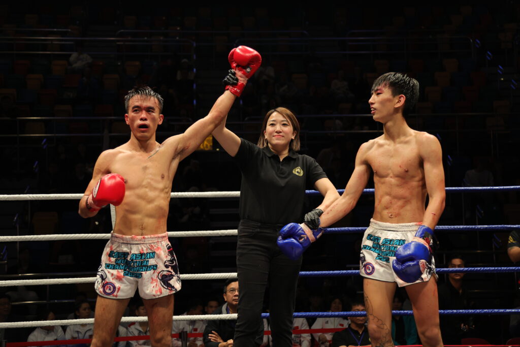 So Chung Ho used sharp timing, crisp combinations, and strong ring control to apply constant pressure, while Wayne Low answered with intelligent movement, accurate counters, and moments of clear dominance that underlined his class and experience. At the end of the bout it was the Hong Kong athlete’s hand that was raised before been strapped up as the new champion.