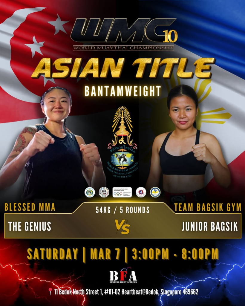 Ginny will be testing her style against Eunicka Costales from the Philippines for the WMC Asian Bantamweight ( -54kg) title on March 7th at WMC 10, World Muaythai Championship in Singapore. Ginny believes the WMC has credibility, exposure, and the opportunity to test herself against top-tier opposition, which in this case, would be Eunicka. Ginny acknowledges that Eunicka is not an easy cookie to crack due to her witnessing her compete at the SEA games, highlighting Eunicka’s unorthodox style, making her hard to read. Saying that, the only way to find out who wins in this matchup is by tuning into the fight on March 7th!
