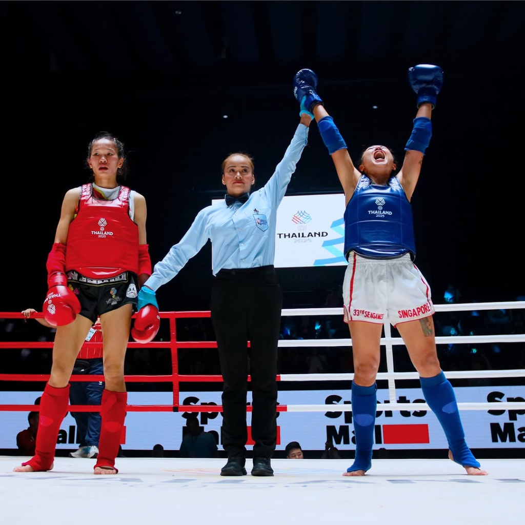 She returned to Singapore, where she began to train and compete in the amateur Muaythai circuit, allowing her to develop her fundamentals and craft her fighting style. By competing in the amateur circuit, she was able to achieve a bronze medal in the 2025 Asian Muaythai Championships and a silver medal in the 2025 SEA Games. She then also achieved gold in the 2024 Asian Open Muaythai championship in Taiwan. Ginny built deep and meaningful relationships, often with people who once stood across from her as opponents but later became training partners and supporters who continually pushed her to grow. These connections have played a defining role in shaping the fighter she is today.