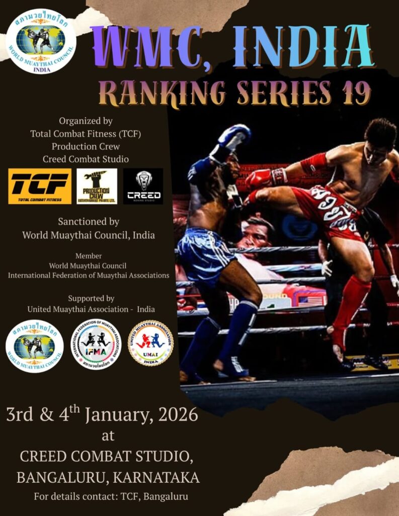 Bengaluru is set to welcome one of India’s most significant Muaythai events as WMC India – Ranking Series 19 returns on 3–4 January 2026 at Creed Combat Studio, Bengaluru, Karnataka.
